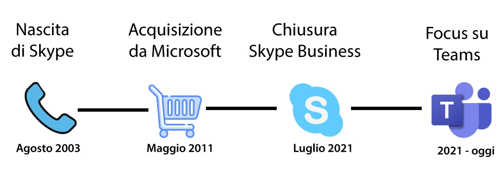 Iniziamo col dire che Skype for Business, la versione dedicata alle aziende, è già ufficialmente chiusa dal 31 luglio 2021. Microsoft ha comunicato la fine del supporto e ha invitato tutte le realtà aziendali a migrare verso Microsoft Teams, la piattaforma collaborativa che oggi rappresenta il cuore della strategia di comunicazione dell’azienda di Redmond.